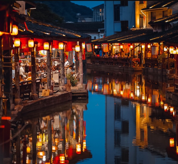 绍兴的年轻人都在这里过夜生活,与运河晓月装置合影