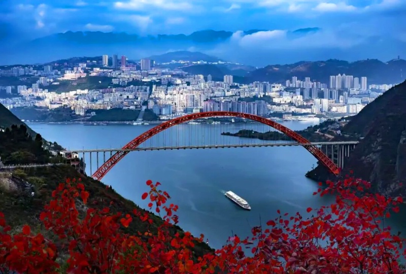 巫山长江大桥:位于长江三峡段的巫峡入口处,是一座钢管中承式拱桥,项目总投资1.96亿元。它被称为“渝东门户桥”、“渝东第一桥”,并创造了多项世界纪录。