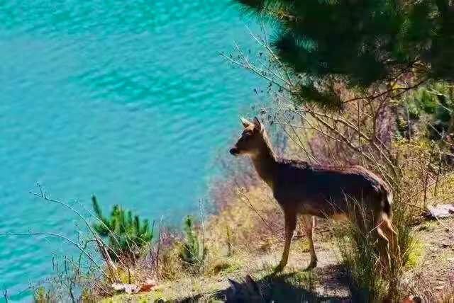 湖水明净呈蓝色,还稍有些丝滑,看起来像是调了色的牛奶湖。一不小心转头在看时,湖水颜色会让你目瞪口呆(它会变色哦)